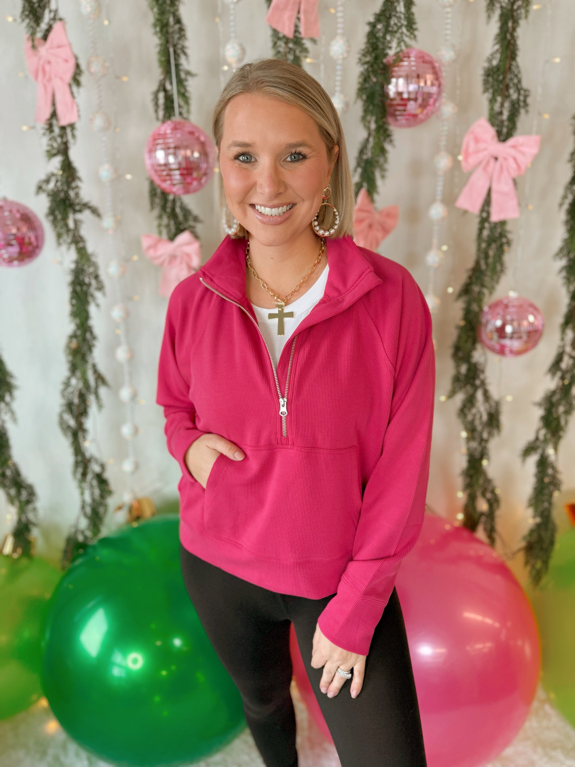 Alison Ribbed 1/4 Zip in Plum Pink
