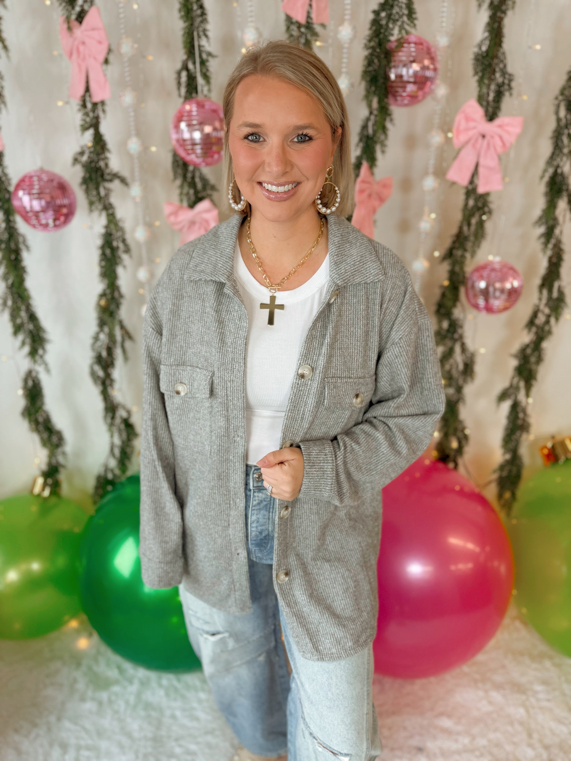 Crafted from a soft, cozy brushed thermal fabric, this oversized button up features a relaxed silhouette that's perfect for transitioning into cooler weather. Designed with classic chest flap pockets and subtle drop shoulders, it blends structure with laid back ease.