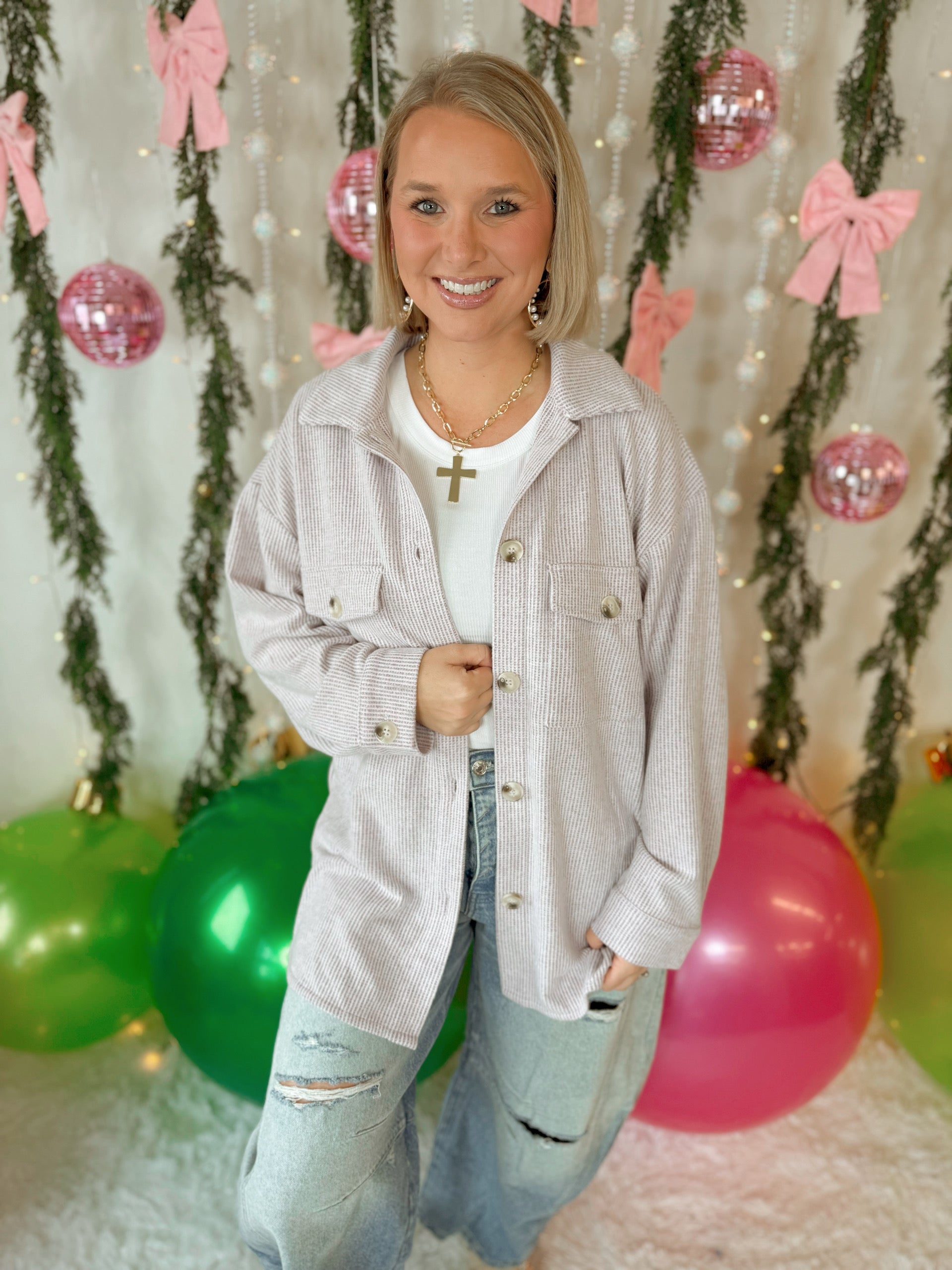 Crafted from a soft, cozy brushed thermal fabric, this oversized button up features a relaxed silhouette that's perfect for transitioning into cooler weather. Designed with classic chest flap pockets and subtle drop shoulders, it blends structure with laid back ease.