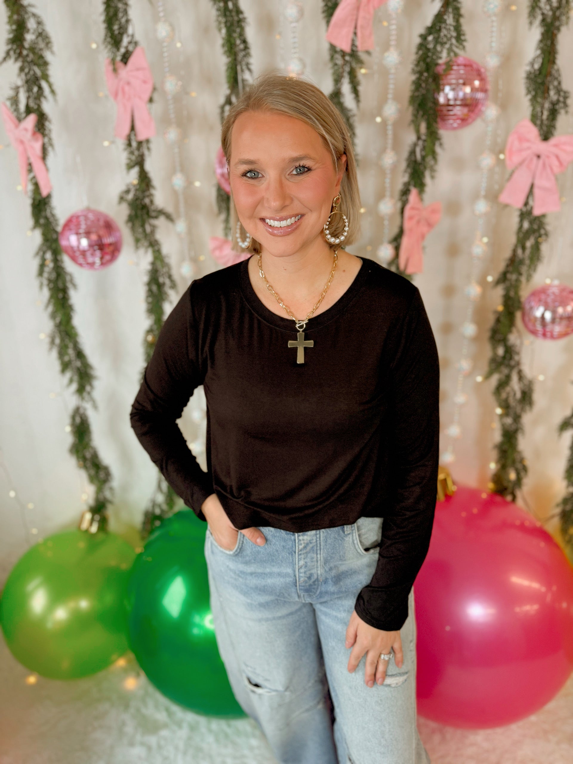 FLOWY ROUND HEM RAYON LONG SLEEVE TOP