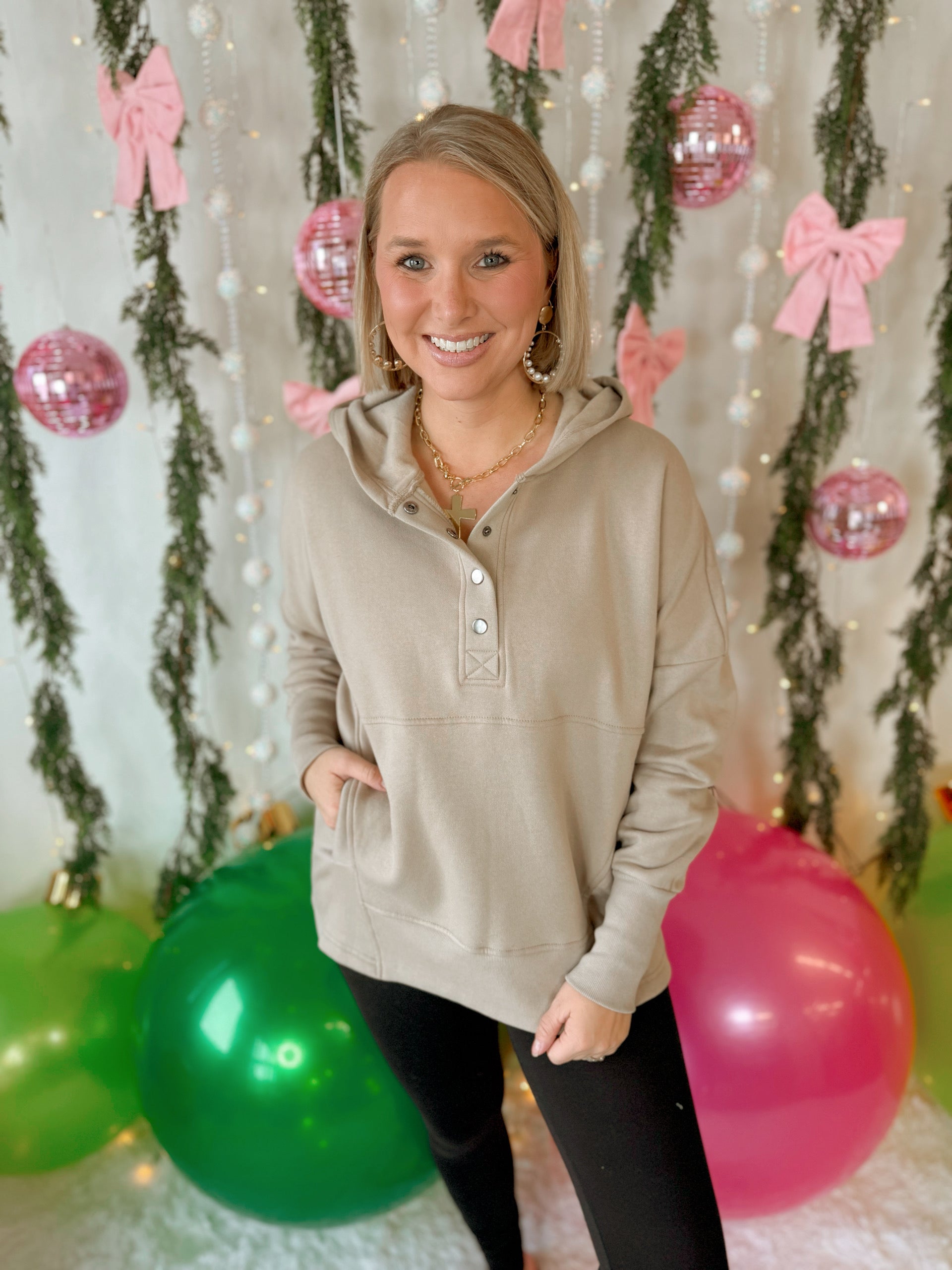 FLEECE HALF-SNAP BUTTON HOODED SWEATSHIRTS