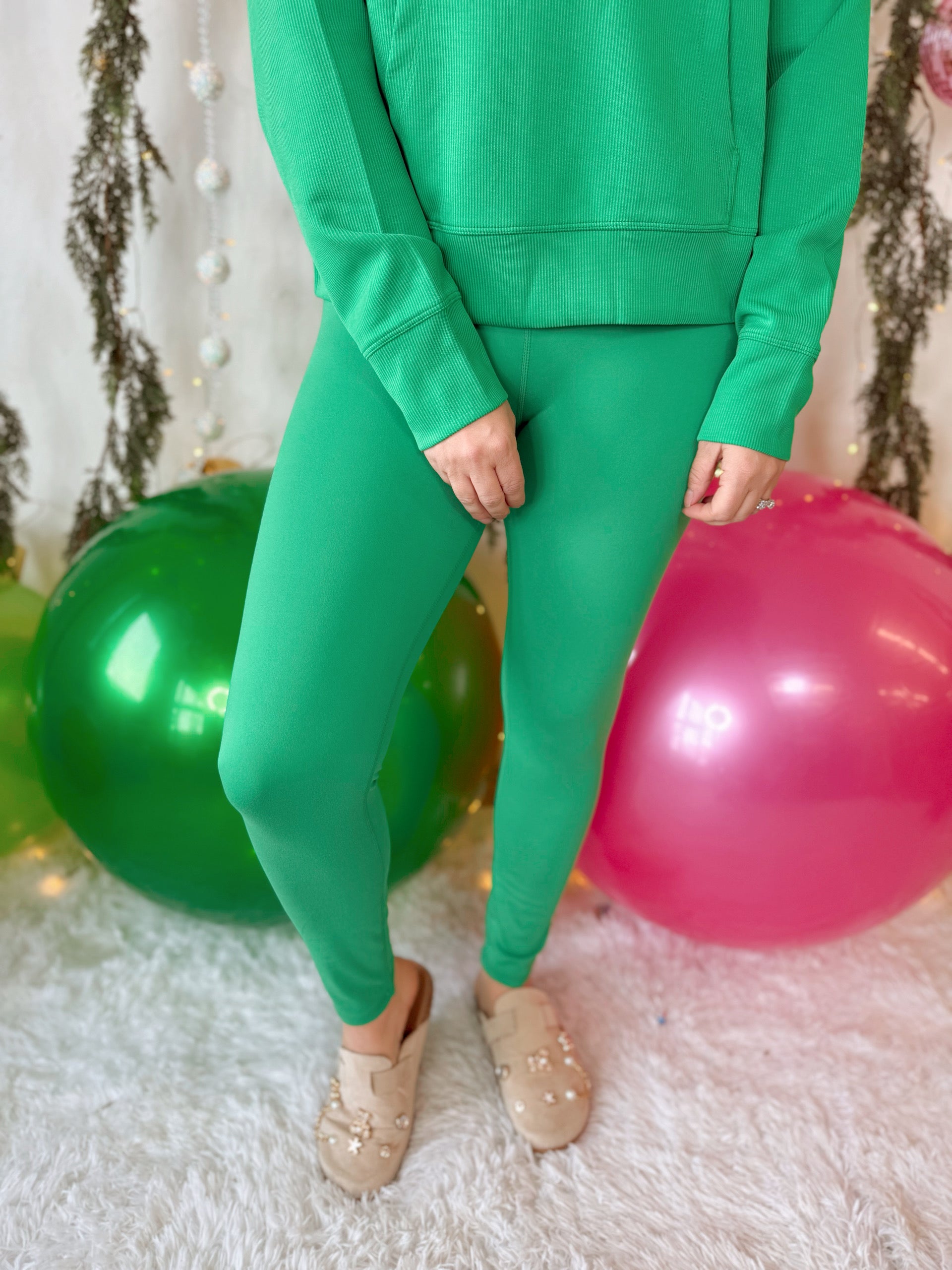 76% polyester 24% spandex 25" inseam Four-way stretchHigh Waisted