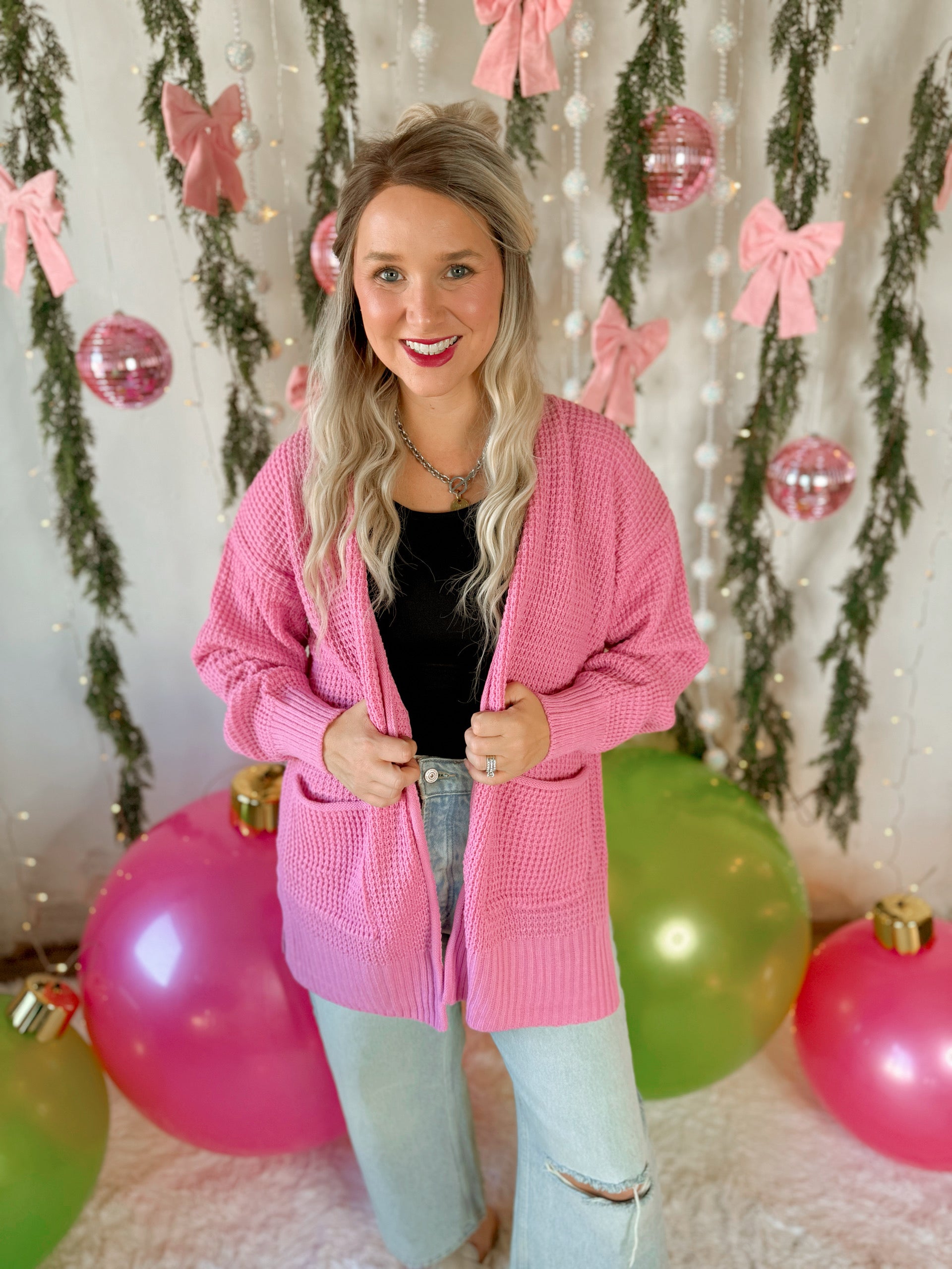 Waffle Cardigan Sweater in Candy Pink