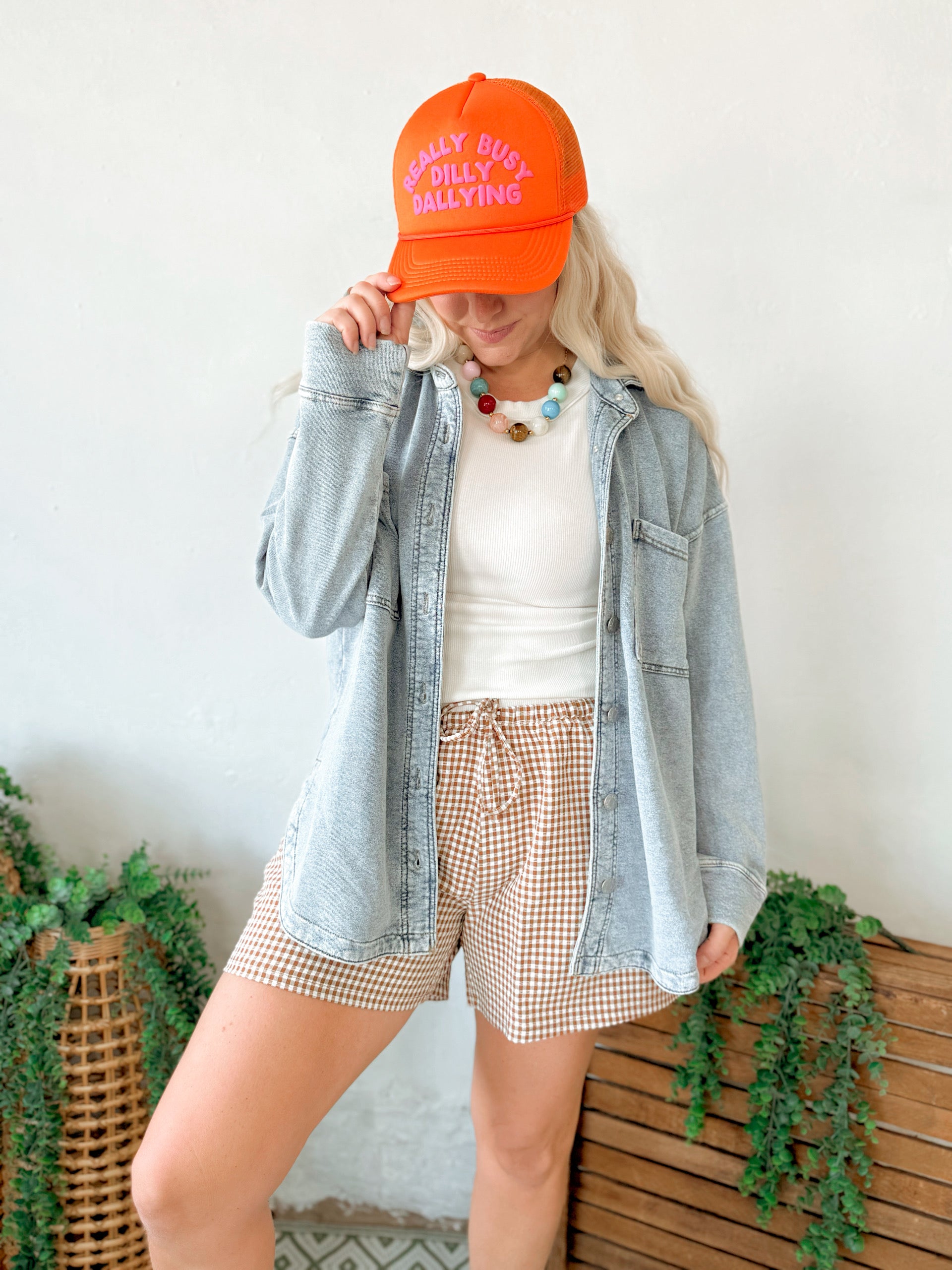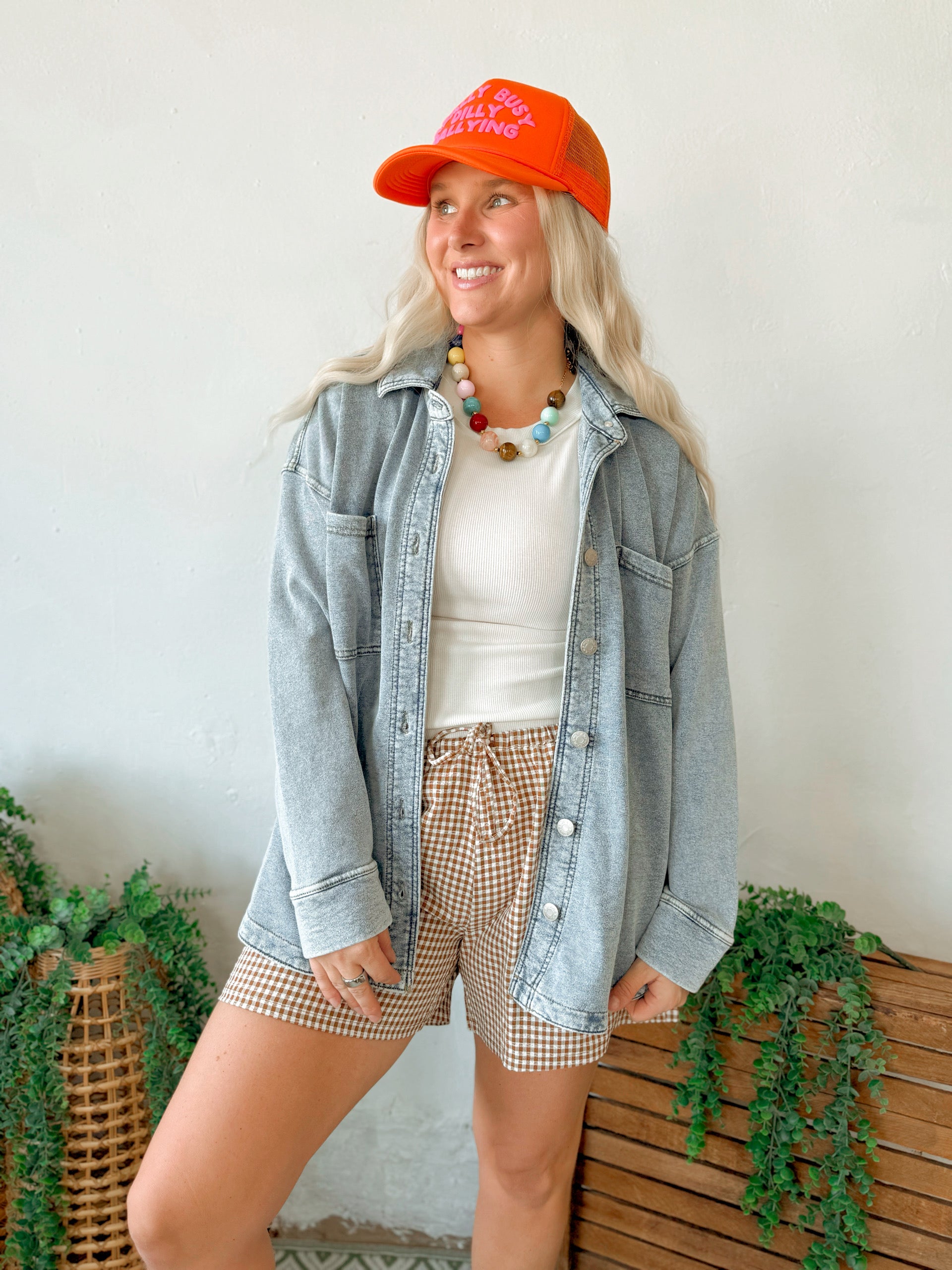 Give your style a cute boost with these shorts. Covered in a gingham pattern, these fun shorts have a drawstring waist that falls into relaxed short legs. Pair them with a basic tank to create a summer ootd. 97% Polyester 3% Spandex
