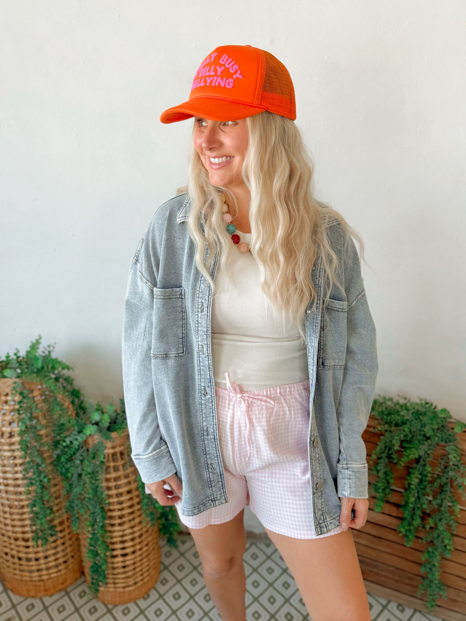 Give your style a cute boost with these shorts. Covered in a gingham pattern, these fun shorts have a drawstring waist that falls into relaxed short legs. Pair them with a basic tank to create a summer ootd.