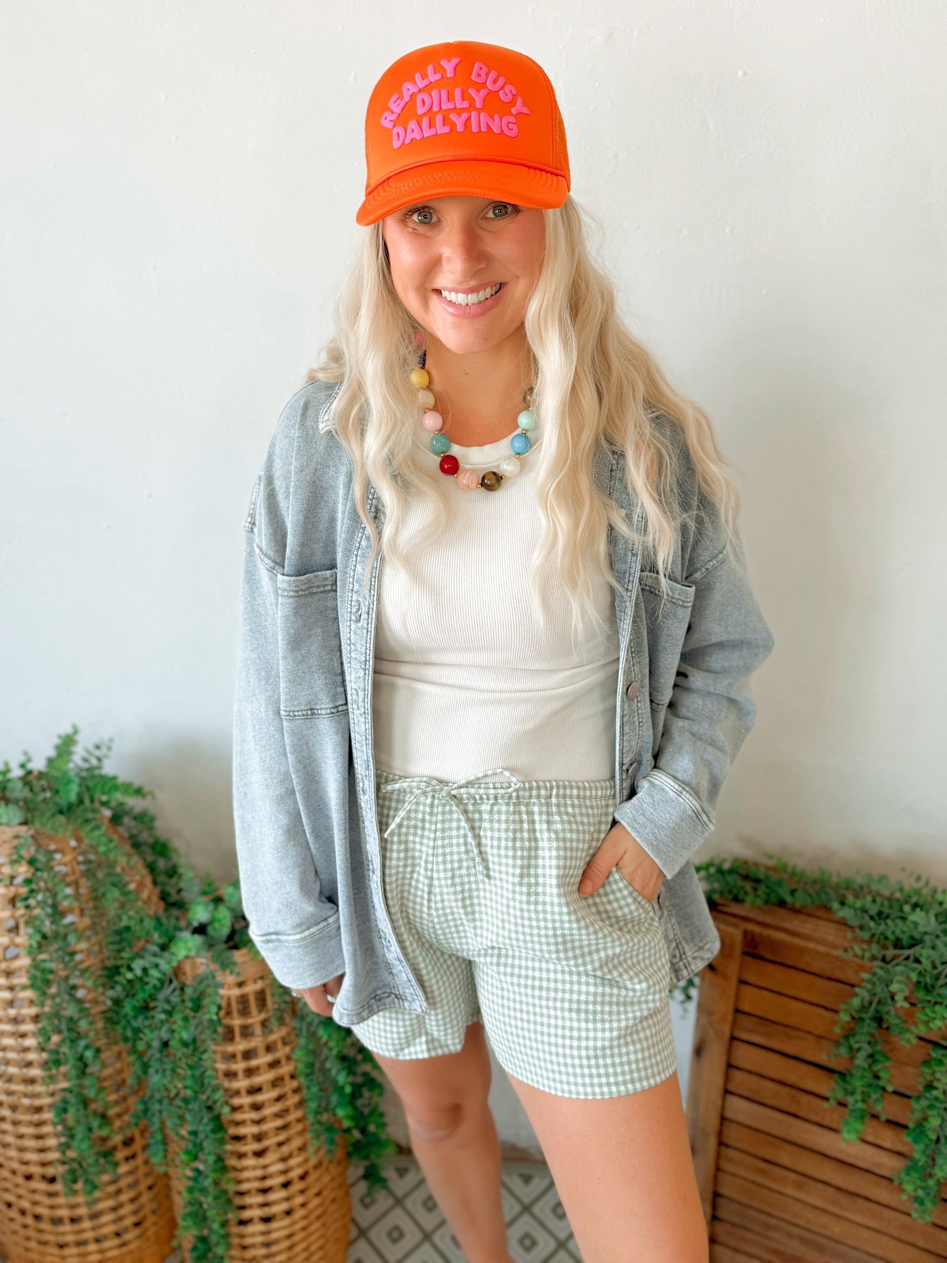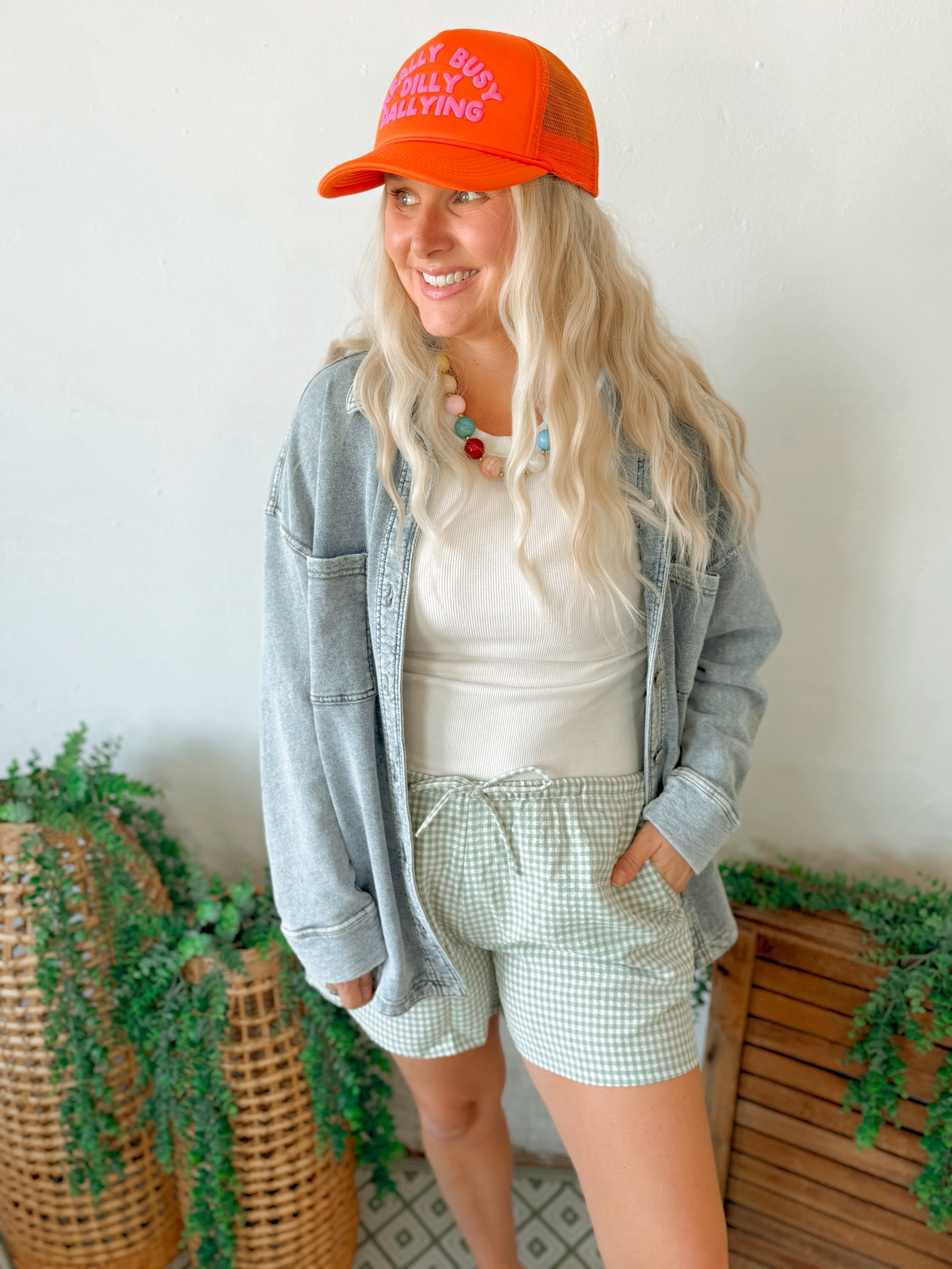 Give your style a cute boost with these shorts. Covered in a gingham pattern, these fun shorts have a drawstring waist that falls into relaxed short legs. Pair them with a basic tank to create a summer ootd. 97% Polyester 3% Spandex