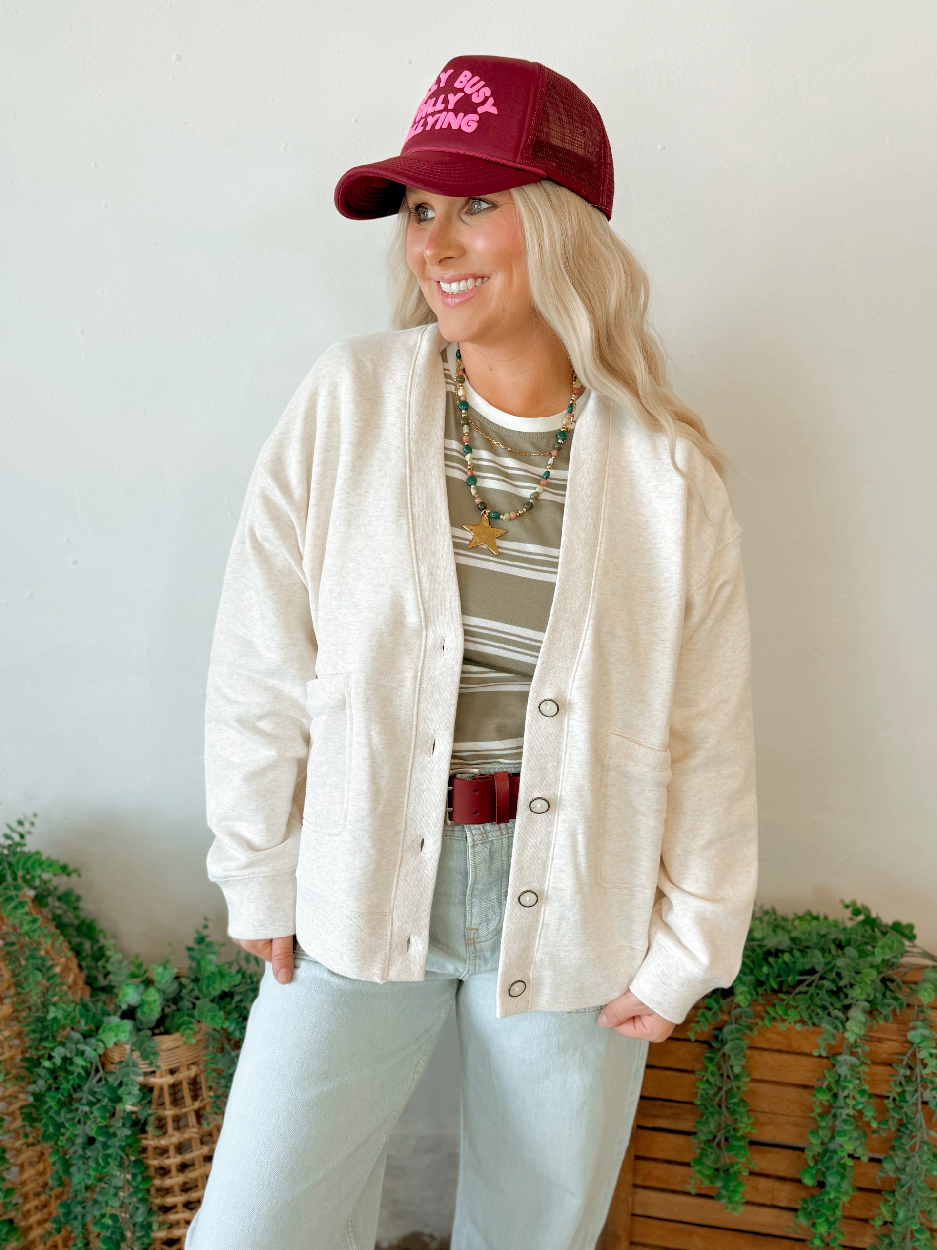 Serenity Fleece Cardigan in Heather Oatmeal