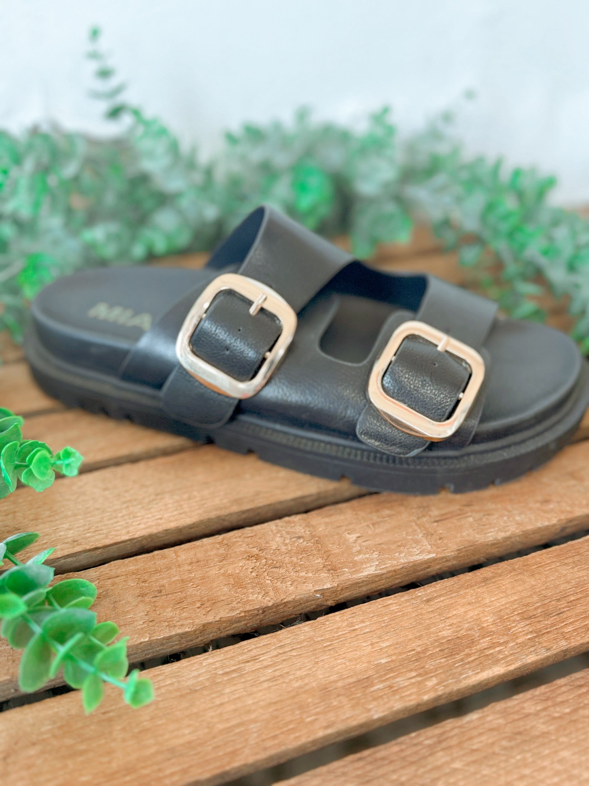 This dual-buckle strapped sandal is perfect for the season. Featuring our signature contoured footbed and trendy design, she's your go to this summer. Runs true to size.