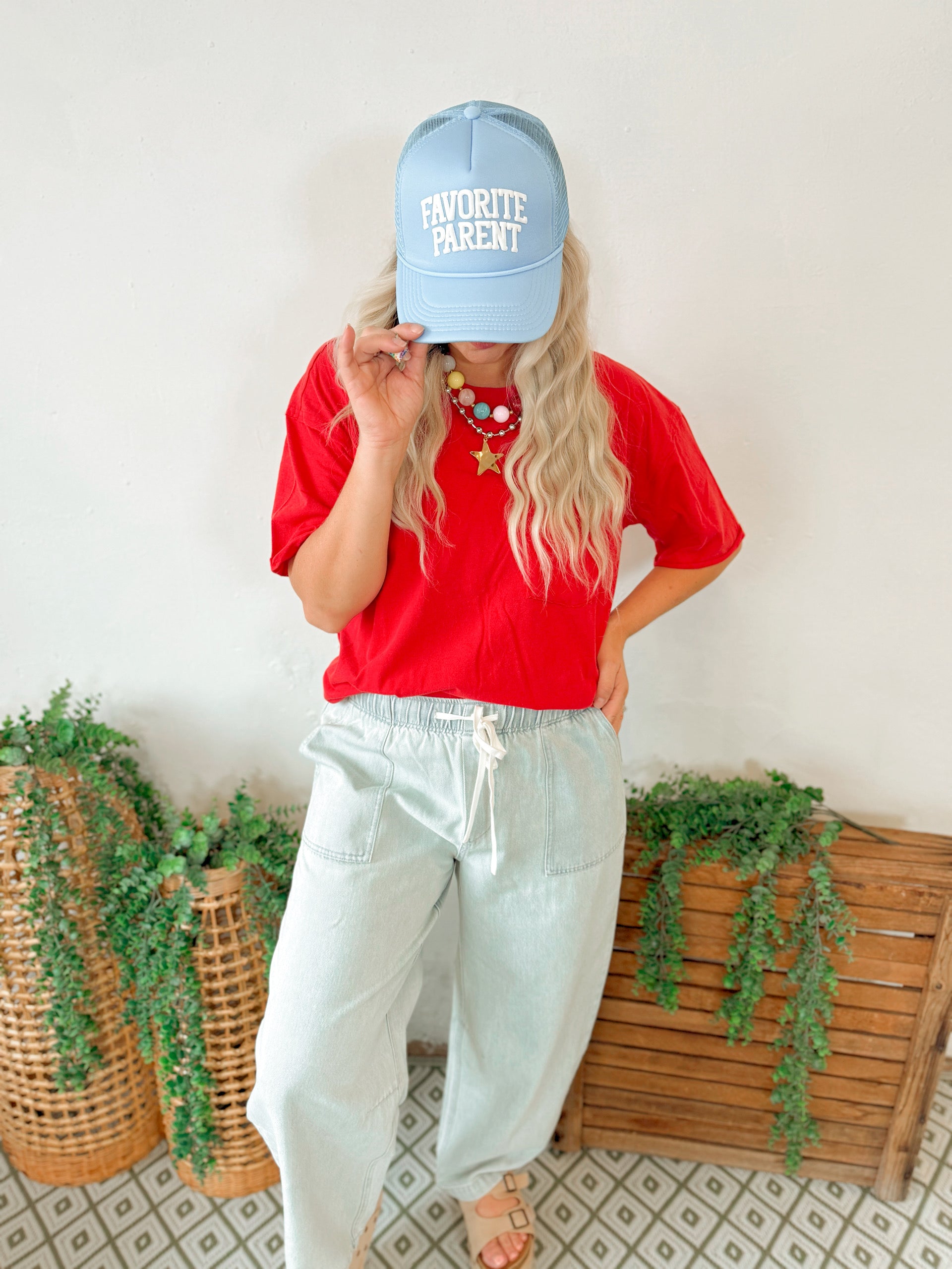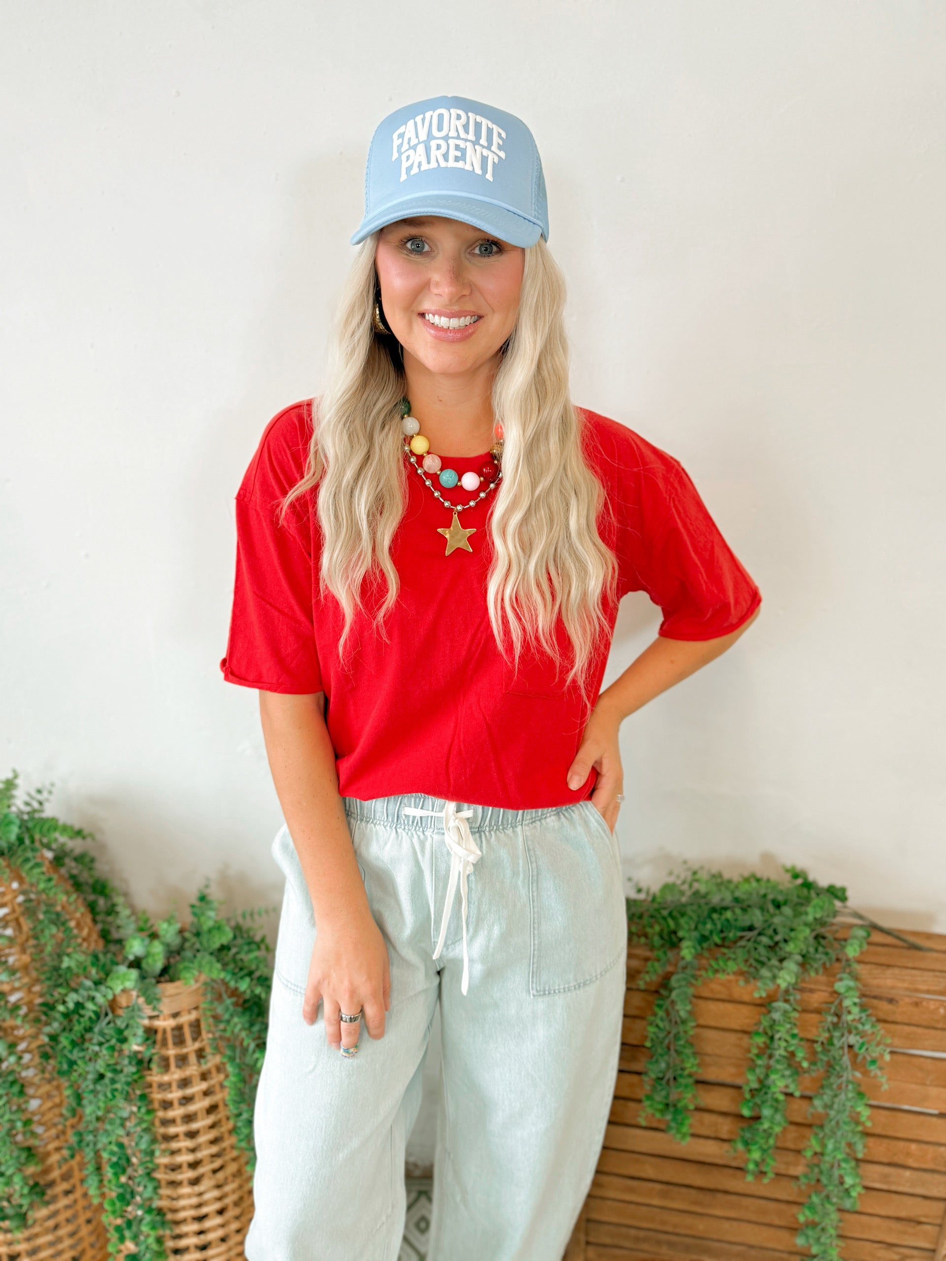 Nova Washed Pocket Tee in Red