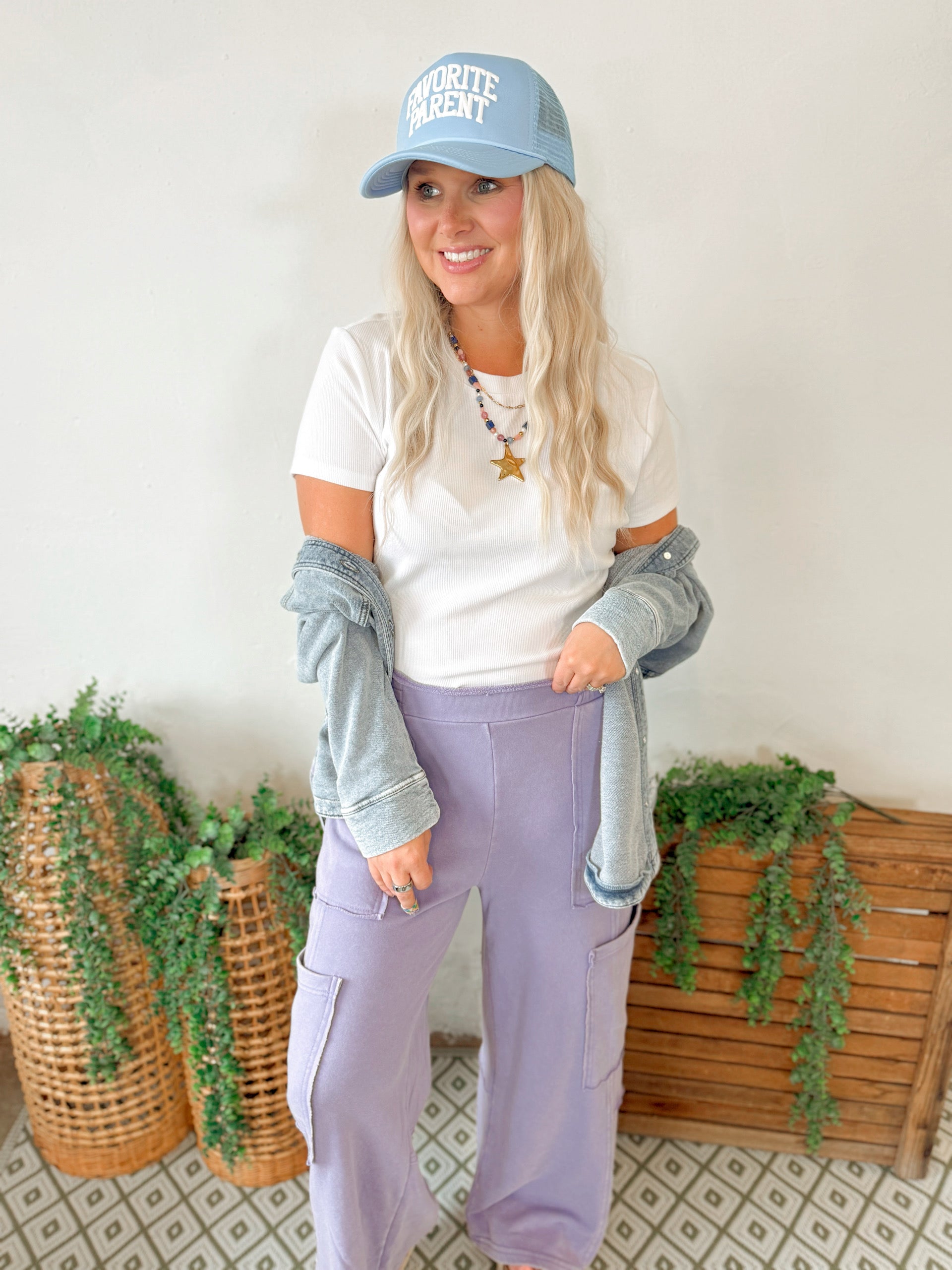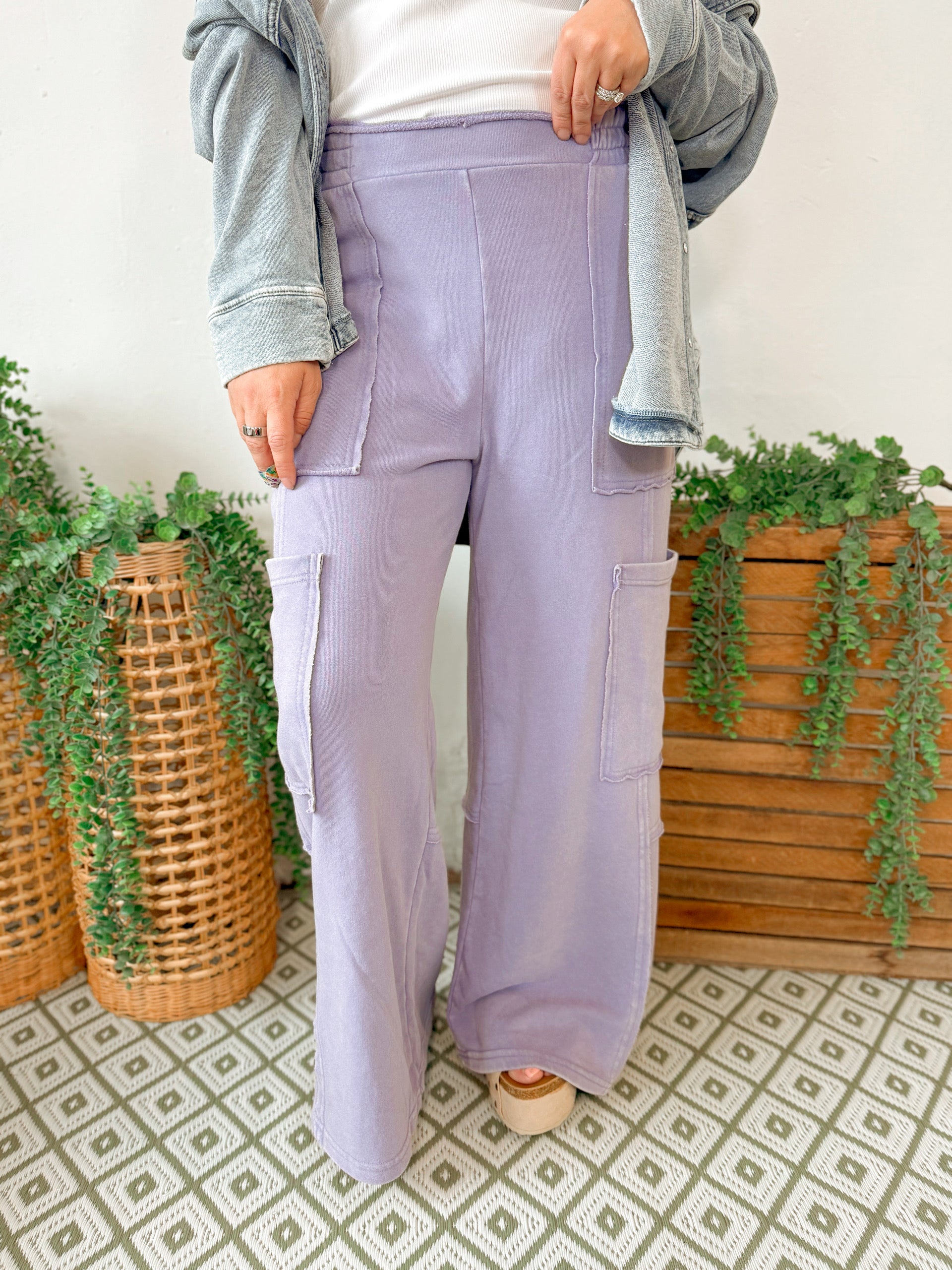 Palmer Wide Leg Cargo Sweatpants in Dusty Purple