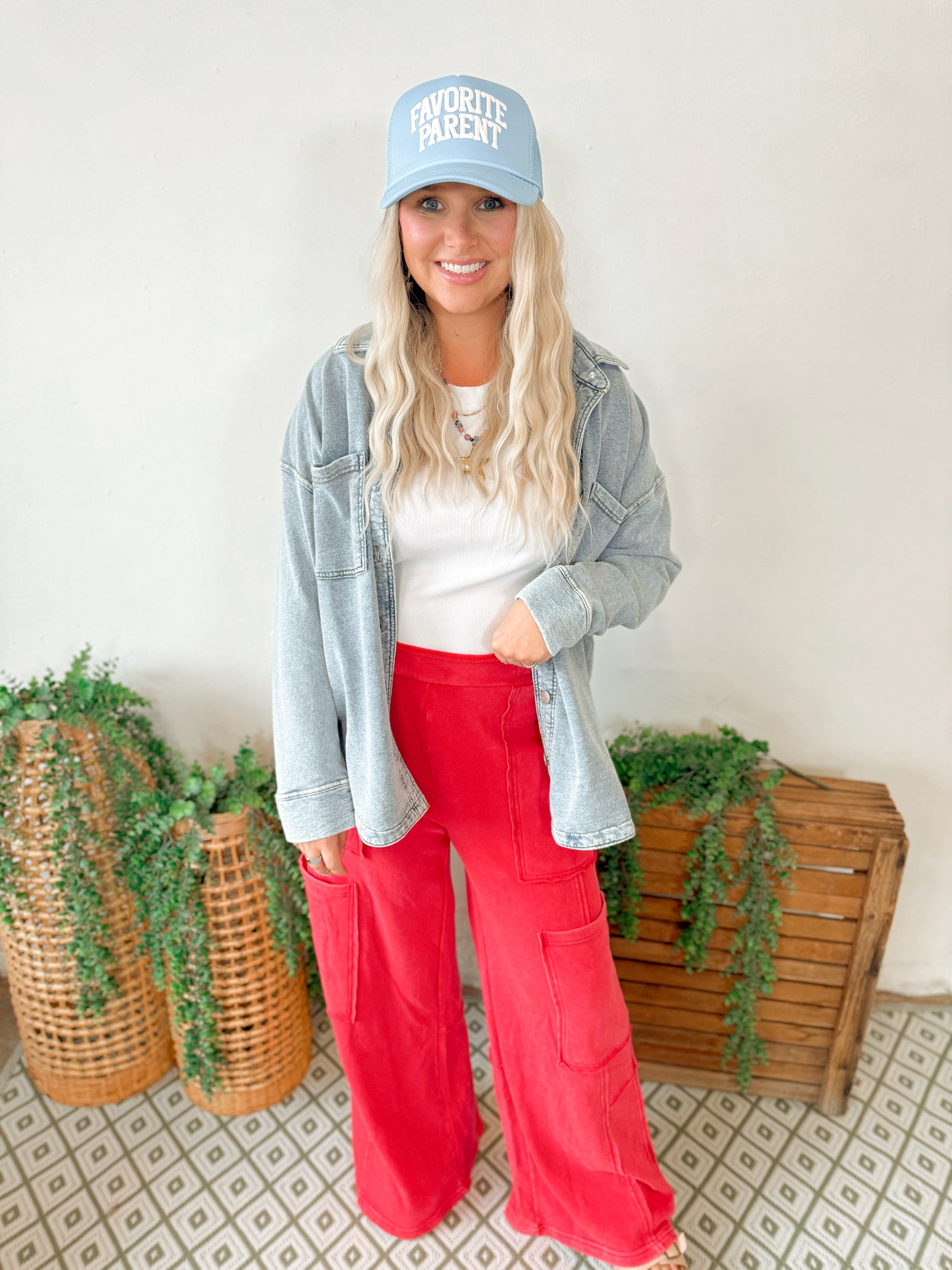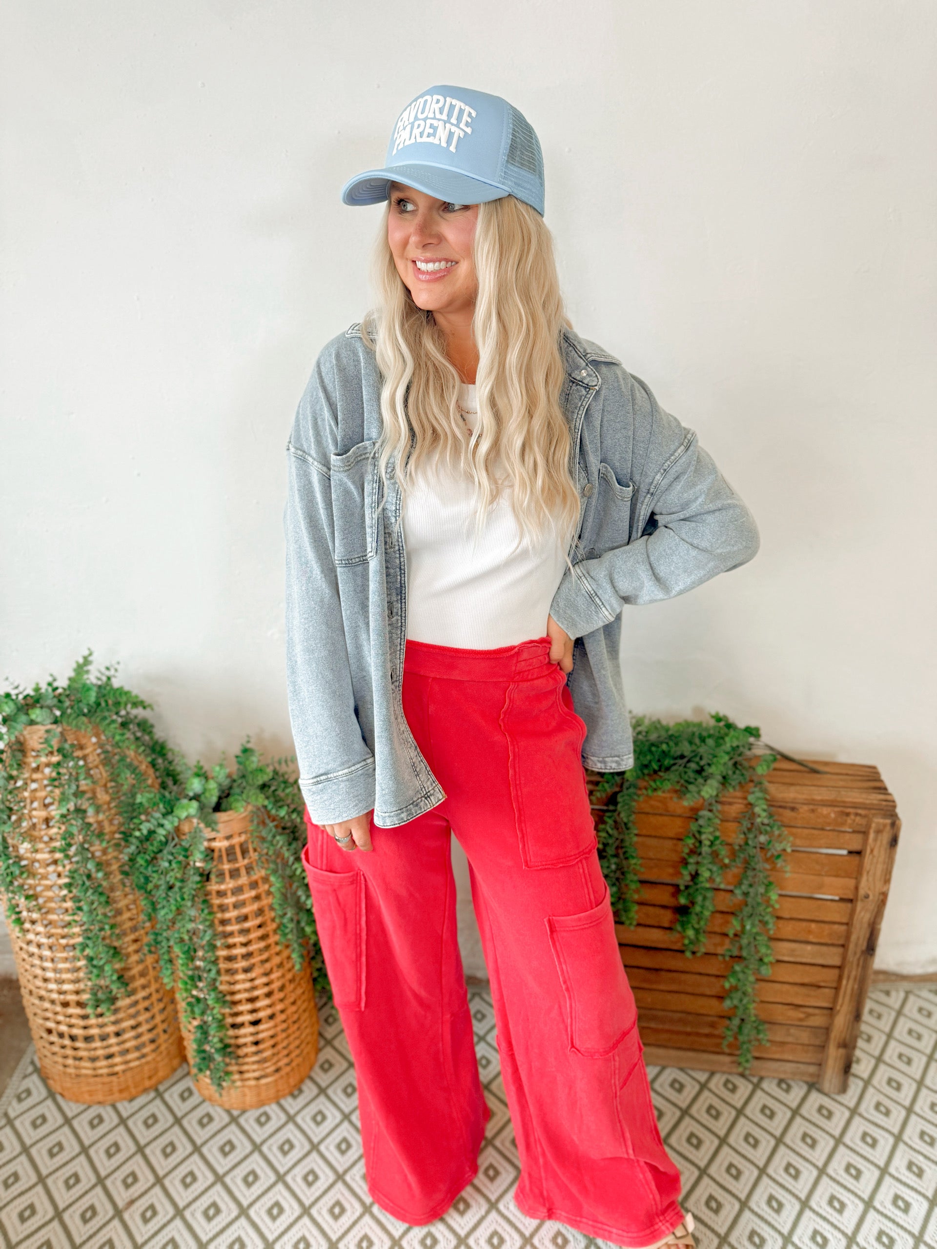 Palmer Wide Leg Cargo Sweatpants in Red