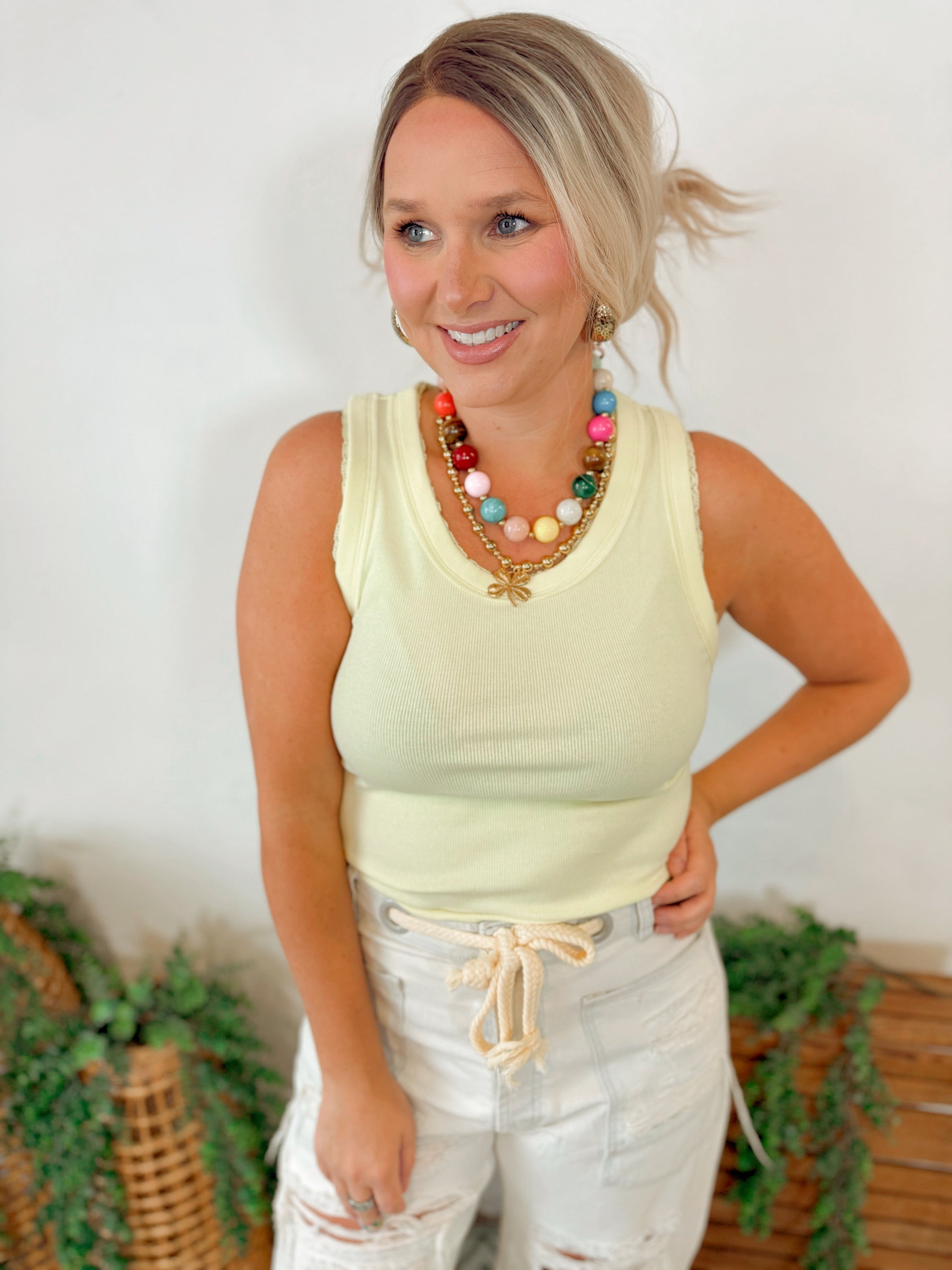 Add a sweet and simple touch to absolutely any 'fit with this lovely ribbed knit tank.
